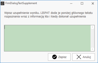 Na poniższym obrazie przedstawiono okno edycji wyniku dla badania histopatologicznego.