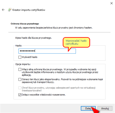 Certyfikat podpisu kwalifikowanego należy zainstalować zgodnie z instrukcją dostawcy.