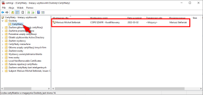 Zostanie wyświetlone narzędzie Menedżer certyfikatów dla bieżącego użytkownika.