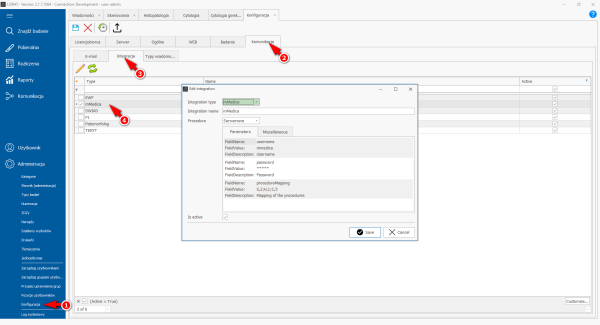 Administrator systemu mMedica powinien wprowadzić do konfiguracji modułu eWyniki systemu powyższe parametry (nazwa użytkownika, hasło, identyfikatory mapowania badań).