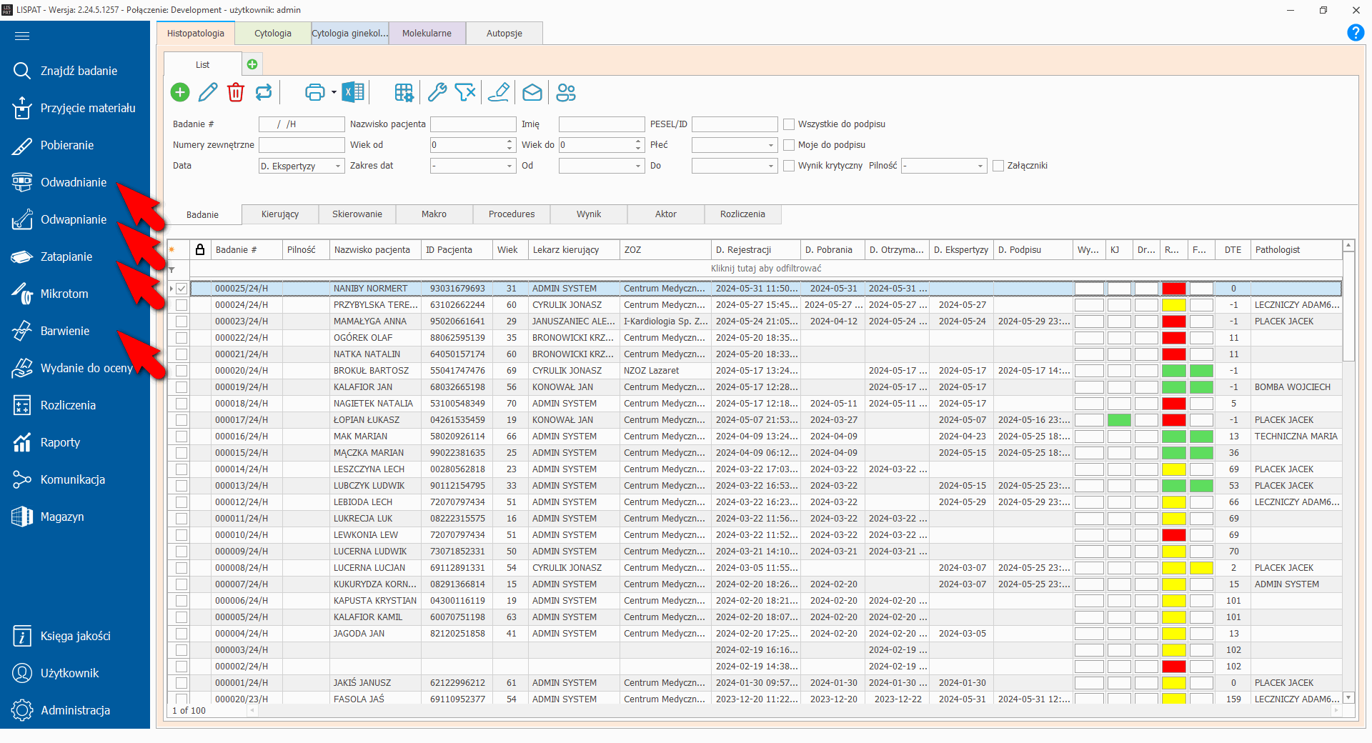 System LISPAT pozwala na wykorzystanie kodów kreskowych (1D lub 2D) nadrukowanych na kasetkach, szkiełkach czy etykietach na materiały. (Czytaj więcej w rozdziale dot. materiałów)