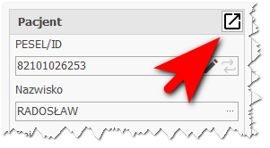 - Kliknij ikonę „launch” znajdującą się w prawym, górnym rogu ramki z danymi pacjenta.