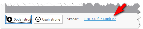 W normalnych warunkach (gdy skaner został już wybrany) skanowanie rozpoczyna się automatycznie po otwarciu okna. Gdyby tak się nie wydarzyło, użytkownik ma możliwość kliknięcie przycisku 'Dodaj stronę'.