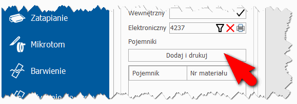 W przypadku użycia wstępnie nadrukowany etykiet, użytkownik powinien nakleić kolejną dostępną etykietę na pojemnik i zeskanować ją czytnikiem kodów kreskowych.